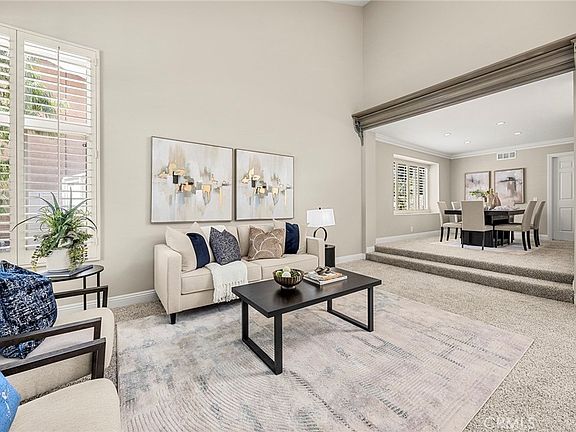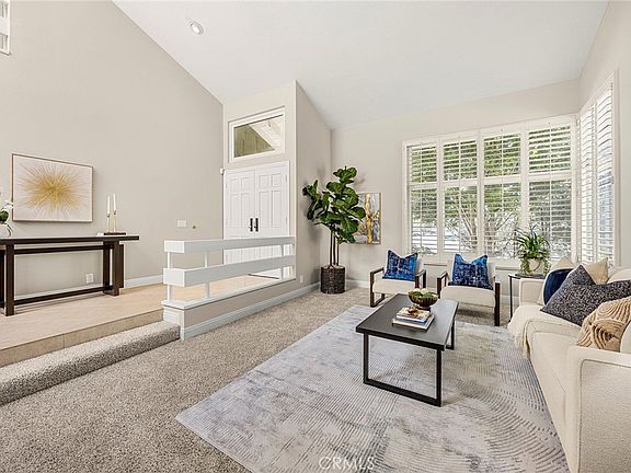 Welcome to this stunning 4-bedroom, 3-bathroom home offering 3,029 sqft of spacious living on a 7,600 sqft lot in the heart of Irvine. From the moment you approach the picturesque exterior, you’re greeted by a large wooden double-door entry that opens to soaring vaulted ceilings, abundant natural light, plantation shutters, recessed lighting, elegant crown molding, and oversized baseboards. Just off the entry, you’ll find a sunken formal living room, leading up to a formal dining room—perfect for hosting guests. The expansive kitchen features granite countertops, a bay window overlooking the yard, a walk-in pantry, and ample lighting. Adjacent to the kitchen is a breakfast area that has immediate access to a covered patio. Across from the kitchen is and a cozy family room with an ornate fireplace and more backyard access.
