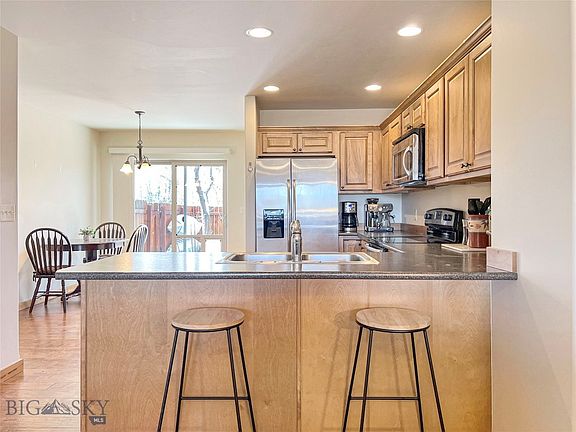 Cute as a button and ready for its new owners! This lovely condo is incredibly built with its thoughtful layout and nice finishes. Minimal upkeep required and plenty of storage space! The oversized master bedroom has a walk-in closet and private bathroom. You'll also find a laundry room, two spare bedrooms, one with gorgeous Bridger Mountain Range views and an extra full bath upstairs. Downstairs there's a large dining area, living room, updated kitchen, half bath and coat closet. An attached garage with ceiling storage and a fenced yard round this unit out. The covered front porch welcomes your guests and would fit a couple rocking chairs nicely! Don't forget the walking paths nearby and extra parking can be found in the back.