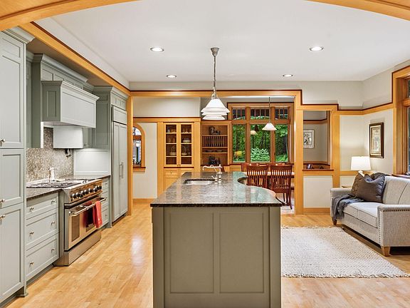 Experience the storybook elegance of European Arts & Crafts living in this stunning Maple Plain residence. Nestled at the end of a serene, tree-lined cul-de-sac in the highly sought-after Orono School District, this European Arts & Crafts Shingle Style home offers a rare blend of elegance and privacy. Designed by renowned Minnesota architect Michaela Mahady and masterfully built by Kyle Hunt & Partners, the home showcases timeless craftsmanship and exquisite attention to detail throughout. The expansive layout features formal living and dining spaces, a cozy family room, a dedicated office, and a chef’s kitchen with top-of-the-line appliances, custom cabinetry, and a spacious center island perfect for both everyday living and entertaining. Four generously sized bedrooms include a luxurious primary suite with a private bath, while custom millwork, plaster veneer walls, and masonry fireplaces add warmth and character to each room. Set on 3.13 acres of lush, wooded land, the property provides ample space for outdoor activities and quiet relaxation, including a screened porch to enjoy the natural surroundings. Located just a short drive from downtown Minneapolis, this home combines rural tranquility with urban convenience, making it a truly exceptional opportunity in a premier location.