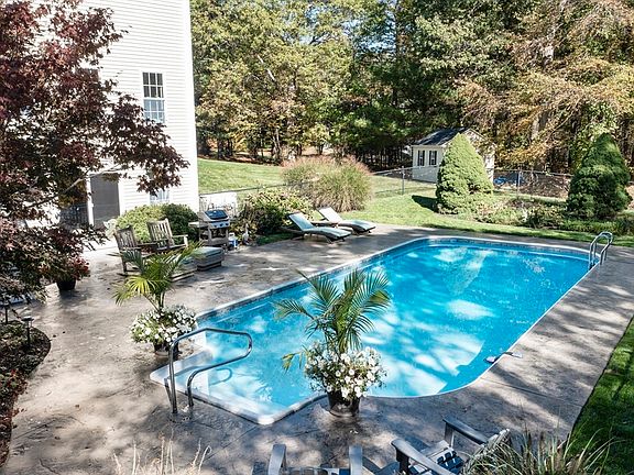 You could be home for the holidays here; This hip roof colonial w/ cathedral ceiling foyer has all the updates. New, completely remodeled open concept kitchen & dining room is cabinet packed w/ quartz counters & backsplash & walnut waterfall island. Living rm. has custom built wall of cabinets w/ window seats. Southern exposure makes for light & bright throughout & no need for a heater for the inground pool w/ stamp concrete surround. Family rm & home gym in the heated, walk out lower level w/ full sized windows & slider to pool area. Primary bedrm has vaulted ceiling & 2 additional bedrms on 2nd floor. Over sized, 2 car attached garage has pull down attic for storage. Hardwood floors throughout 1st & 2nd floor, central ac, whole house Generac generator & shed. Beautiful, custom landscaped 2 acre, private lot w/ stamped concrete walkway & Trex deck. Lovely neighborhood location, end of cul-de-sac. Enjoy a stroll around Whitin Res & state forest hiking trails. Close to rts 395 & 146.