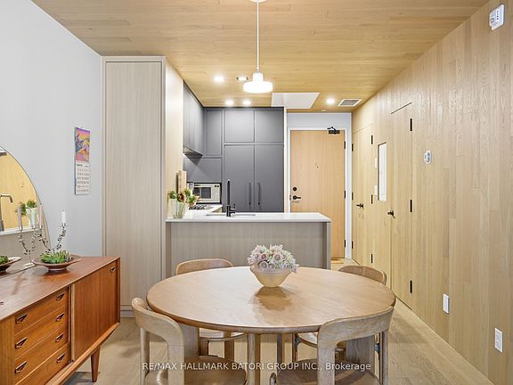 Welcome to Unit 301 at The Cabin Condos, a rare two-storey residence offering over 1,300 sq ft of thoughtfully designed, Scandinavian-inspired living. Set just off Queen Street West, this boutique building delivers a calm, design-driven retreat within one of Toronto's most vibrant neighbourhoods. The main level showcases a clean, minimalist aesthetic with wide-plank hardwood floors, a bright open-concept layout, and a sleek custom kitchen featuring integrated appliances, a gas cooktop, and refined finishes that strike the perfect balance between form and function. A stylish two-piece powder room completes the level. Upstairs, the sun-filled primary suite is framed by floor-to-ceiling windows and includes a walk-in closet and a spa-inspired ensuite with an oversized shower. The second bedroom also features its own ensuite and ample storage. Throughout the home, clean lines and abundant natural light create an airy, contemporary atmosphere. A west-facing balcony with a gas line extends the living space outdoors-ideal for summer evenings and effortless entertaining. The unit also includes stacked parking with a lift, adding rare convenience in this location. Ideally situated near Ossington, Trinity Bellwoods, top restaurants, shops, and transit, yet thoughtfully set back for privacy and quiet, this is urban living at its most refined.