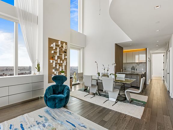 Unparalleled VIEWS from Every Room! 2 Bedroom with Den!! Step into a world of exceptional luxury with this one-of-a-kind duplex at Madison Square Park Tower. Boasting over 20-foot ceilings, this stunning two-bedroom, two-bathroom home also features an open, airy office/den. Located on the 42nd floor, this trophy apartment offers sweeping, postcard-worthy views of New York City landmarks, including the Empire State Building, Chrysler Building, Freedom Tower, Clock Tower, and the Hudson River. The expansive living and dining areas are bathed in natural light, with double-height ceilings and 360-degree vistas facing north, east, and south. The chef's kitchen is a true masterpiece, featuring custom Molteni cabinetry, marble countertops, Sub-Zero and Miele appliances, and a vented hoodan ideal space for culinary creativity. The main level also includes a generously sized secondary bedroom with floor-to-ceiling windows showcasing views of the Hudson River and ample closet space. A gracefully designed staircase with bronze accents leads you to the luxurious primary suite. This tranquil retreat includes a spacious walk-in closet/dressing room and an elegantly appointed, five-fixture windowed bathroom complete with a deep soaking tub, lacquered wood vanities, recessed medicine cabinets, Waterworks fixtures, and a separate shower with breathtaking views. The open den/office, framed by soaring 20-foot windows, offers a rare sense of floating among the clouds. Additional highlights include automated shades, a state-of-the-art home automation system, a four-pipe HVAC system, and a fully vented washer-dryer. Madison Square Park Tower is ideally situated in the heart of the Flatiron District, just a few blocks from Madison Square Park and Gramercy Park, with easy access to major subway lines. This ultra-luxury condominium offers over 10,000 square feet of world-class amenities, including the Wright Fit fitness center with state-of-the-art equipment, a golf simulator, basketball court, playroom, library lounge, billiards, and a card room. The building also boasts a stunning terrace with an outdoor grill and two elegant residential lounges to entertain guests in style with panoramic city views. Schedule your private showing today and experience why this exceptional home at 42B is truly a must-see. Available Sept 1st. RENTAL FEES: Application Fee: $700 Credit Check: $120 each applicant Annual Amenities Fee: $2500 Move-in Fee: $500 Review Fee: $600 First Month's Rent and One month's rent due at lease signing.