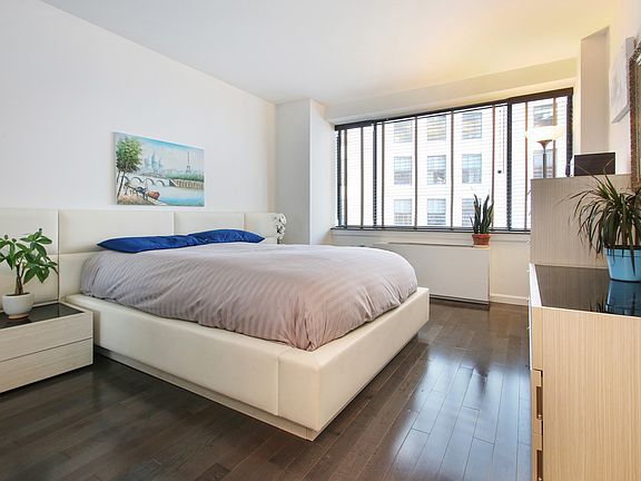 Unit 17C is a fully-renovated, high floor, one bedroom residence featuring a great layout, large windows, and a balcony; all with bright southern exposure! Thoughtful renovations include a custom walk-in closet in the bedroom, dark hardwood flooring throughout, and a Cararra marble bathroom. Entertaining is a breeze with the pristine kitchen and bar, new appliances, and space underneath the counter for your barstools.