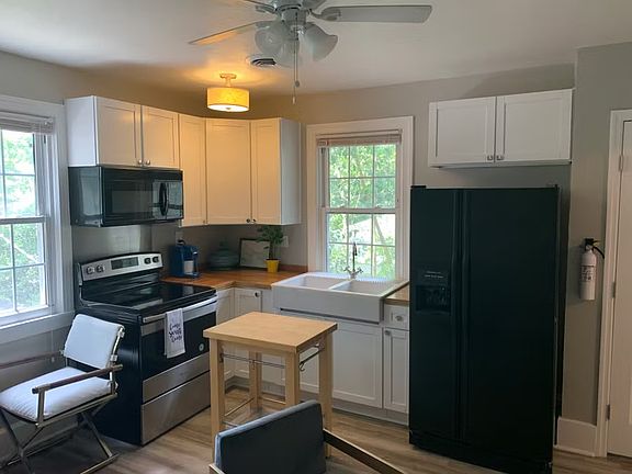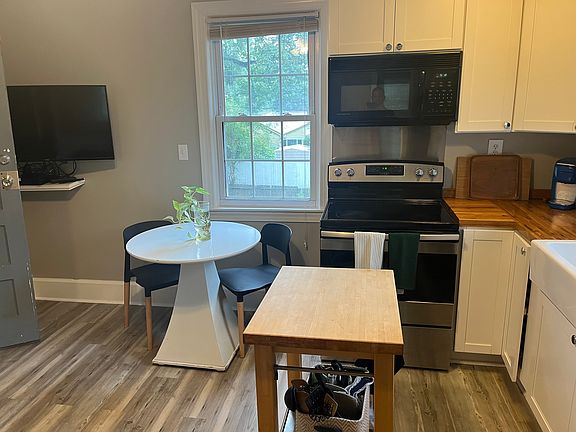 Adorable upper carriage apartment available in great location. This 1 bedroom 1 bathroom apartment comes fully furnished and will include all utilities. Beautiful hardwood floors throughout and tons of storage space. Relax on the porch and enjoy the large fenced backyard. This property has a shared backyard with 2 additional units. Offers off street parking and in a very safe area.