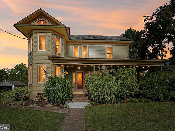 New price! You won't find a home in this condition on small acreage AND right in a small town full of restaurants and amenities, parks, etc anywhere else!! See documents tab for features & systems info. Small acreage, right in town! The Dr. C.E. Foley House — A Victorian Gem in Downtown Lovettsville 2011 Community Blue Ribbon Design Excellence Award for Restoration, from The Loudoun County Joint Architectural Review Board! See interactive floor plans under the virtual tour tab. Beautiful 4-bedroom, 2.5-bath Victorian blends history, character, and small-town charm. Once home to Lovettsville’s town doctor, the property is a rare find—2.5 acres in the heart of town with a private pond PLUS a separate .3-acre parcel with paid water/sewer tap included in the sale. No HOA and chickens are allowed in town! Inside you'll be charmed by the soaring 9-foot ceilings and original hardwood floors, oak trim, a leaded glass window, pocket doors, and working original windows. Historic home lovers will notice details like solid oak five panel doors with bullseye door knobs, vintage brass switch covers, and period lighting. A modern kitchen with granite countertops, glass-front cabinetry, and walk-in pantry offers everyday comfort. Spacious rooms, a main-level office, and front and rear staircases add to the home’s appeal. Primary bedroom has an ensuite full bath and walk in closet. Shared hall bath is spacious with a claw foot soaking tub and separate shower. Bedroom 2 and 3 also have walk in closets. Outside, enjoy a deep wraparound porch, slate patio, and custom-painted exterior restored by hand. The siding is American Chestnut, which is naturally rot resistant. Brand new (2025) HVAC! No well and septic, this acreage is on town water/sewer! Oversized gravel parking area behind the home offers plenty of room to build a garage if desired. The old carriage house foundation surrounds the garden area. Xfinity internet makes working from a home a breeze. From your front lawn, watch the Independence Day parade and fireworks, then stroll, bike, or drive to 10 restaurants, Back Street Brews coffee shop, the Co-op Grocery, library, the 90-acre community park, dog park, Community Center, pool, and more. With festivals, traditions, neighbors who know your name, and many wineries and breweries nearby, this is small-town living at its best. The original portion of the home is c1899. A rear addition was added by the doctor c1920 to expand the living space. Dr. Foley welcomed patients from the side entrance that opened into his waiting room (now the laundry/mud room). The main level office is currently used as a 5th bedroom. It's more than a home, it's a piece of Lovettsville history.