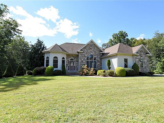 EXQUISITE FLORIDA STYLE CUSTOM CRAFTED RANCH BUILT IN 2006 OFFERS A GREAT OPEN FLOOR CONCEPT WITH VAULTED CEILINGS FORMAL DINING, LIVING ROOM WITH ZERO CLEARANCE MARBLE FIREPLACE, MASTER-SUITE OFFERS TWO WALK-IN CLOSETS AND A SPA EQUIVALENT BATH WITH JACUZZI TUB, SUN-FILLED CUSTOM KITCHEN HAS GREAT COUNTER SPACE AND PLENTY OF CABINETRY, TWO ADDITIONAL BEDROOMS HAS PRIVATE FULL BATH, LAVETTE FOR GUESTS, POTENTIAL IN-LAW HAS SEPARATE ENTRANCE, OVER 2 ACRES OF LAND, TWO CAR ATTACHED GARAGE, PROFESSIONALLY LANDSCAPED MANICURED LAWN WITH SPRINKLER SYSTEM, AND MUCH MORE. CALL TODAY FOR YOUR PRIVATE SHOWING.