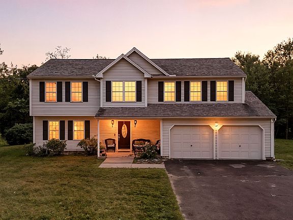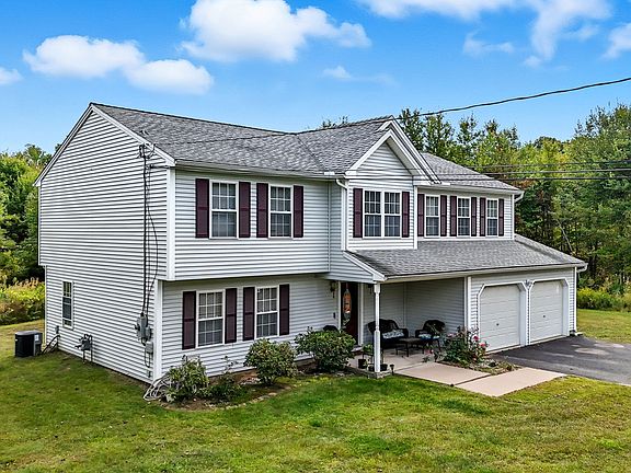 Multiple offers in- Seller is asking for H&B by Friday at 8PM. Seller will respond on Saturday. Discover the perfect blend of comfort, space, and style in this beautifully maintained 4-bedroom, 2.5-bath raised ranch, set on a full acre of serene, tree-lined property in Bloomfield. Built in 2003 and recently refreshed with new paint and carpeting, this move-in-ready home offers an inviting open floor plan ideal for gatherings, featuring a bright living and dining area, a well-equipped kitchen with pantry, and a spacious primary suite complete with a private bath and relaxing jetted tub. The finished lower level provides even more room to enjoy, with a cozy fireplace and walk-out access to the outdoors, plus an additional bedroom perfect for guests, hobbies, or a home office. With central air, propane heat, a 2-car garage, plenty of parking, and outdoor spaces including a deck and porch, this home is designed for both everyday living and entertaining. Nestled in a peaceful setting yet conveniently close to local shops, restaurants, and commuter routes, this property offers the best of both privacy and accessibility-making it a wonderful place to call home.