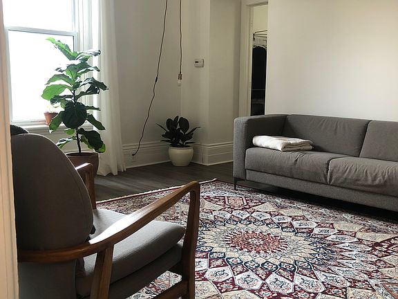 This unit has been recently refinished with new flooring, kitchen, AC, and appliances (dishwasher/washer/dryer/fridge/stove.) It has beautiful 10' ceilings, original baseboards, and tons of charm with large windows in each room and plenty of storage. It comes with its own private entrance, two driveway parking spaces, and use of the backyard and deck.