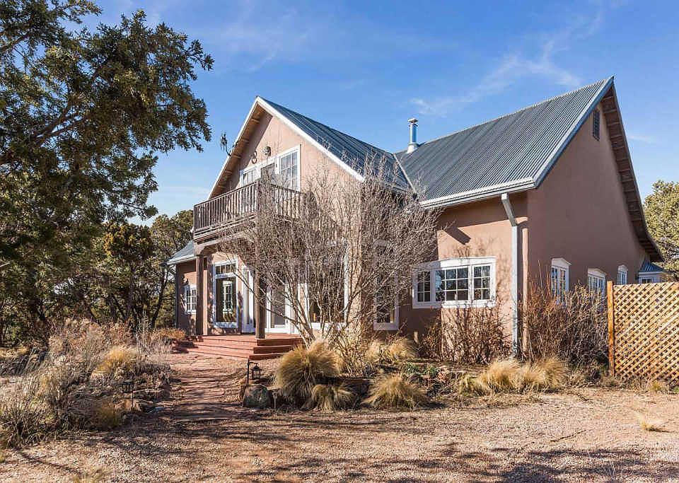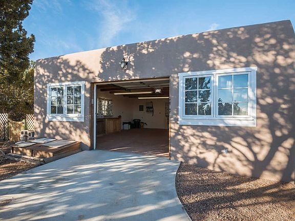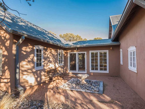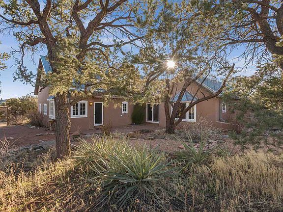 Quintessential Northern NM adobe retreat! Impeccably maintained with a fabulous addition/remodel done in 2006. Venetian plaster walls upgrades, beautiful hand hewn wooden vegas, brick and wooded flooring and well proportioned rooms give the home a cottage feel. Pitched pro-panel roof means little maintenance. Lovely gardens and shaded pinon trees make it feel cozy. Several rooms, used as an office/library in the past, can be easily turned into bedrooms, or a media room. Garage was converted years ago to an woodworking studio with a wood stove. Would make an amazing artist studio! Super close to Eldorado. Gated and fenced with expansive southern views! Come see it today!