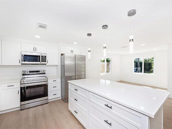 One or more photo(s) has been virtually staged. Beautifully renovated from top to bottom! This Englewood gem has been completely remodeled, including a brand-new primary suite with an en suite bath. Step inside to find stylish LVP flooring throughout and a bright, open floor plan perfect for modern living. The stunning kitchen features white shaker cabinetry, quartz countertops, a generous island with breakfast bar seating, and all-new stainless steel appliances. Barn doors conveniently conceal the laundry area and tankless water heater, adding both charm and function. Outside, enjoy a cute, level backyard that’s easy to maintain. Ideally located just 7 minutes from Englewood Beach and close to all the local restaurants, shops, and vibrant nightlife on Dearborn Street, this home offers the best of coastal living. Whether you’re looking for an affordable single-family home, a seasonal retreat, or a low-maintenance rental or Airbnb investment, this move-in ready property offers endless possibilities! Additional new features include: NEW ROOF, NEW HVAC, NEW TANKLESS HOT WATER HTR,