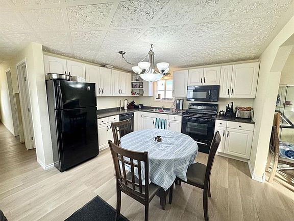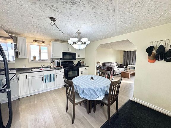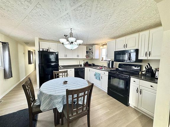 Charming 2 bedroom mobile in Evergreen Trailer Court. As you enter you are welcomed by a bright kitchen with eating area. There is plenty of white cabinetry and newer black appliances which are included. The living room is spacious and flows right off the kitchen. Down the hall you will find the primary bedroom steps away from the 4 pc bathroom, laundry room with extra storage, and a spare bedroom. A bonus is the 8x8 mudroom addition that creates extra room for a freezer or more storage. Outside you'll find a large yard, with tarp shed and 8x10 shed as well as the 9x28' deck to enjoy. With lots of updates this home is ready for you. Updates include drywall, plumbing, electrical, flooring, hot water tank, windows just to name a few.