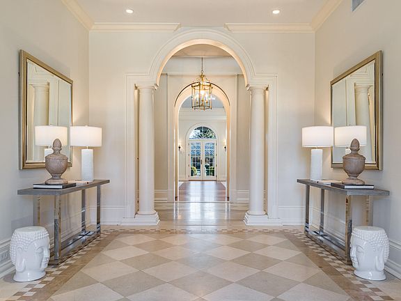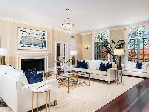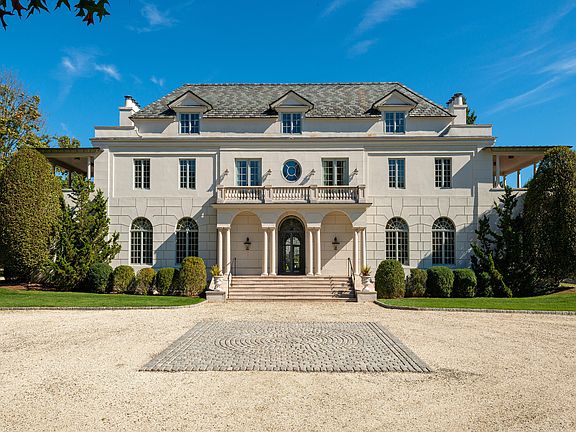 In the exclusive guard-gated Field Point Circle association, this lavishly elegant home offers richly detailed entertaining spaces and luxurious amenities. An oversized family room with double limestone fireplaces opens to a covered patio, outdoor pizza oven and fountained gardens. Fireplaces anchor the formal dining room with marquetry floors and office with cherry built-ins. The luxurious master suite offers water views of Long Island Sound from master porch and overlooks the pool with spa and pool house. Lower level served by 4-floor elevator features home theater, gym and guest suite. Garaging for 6 cars.