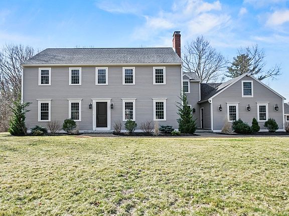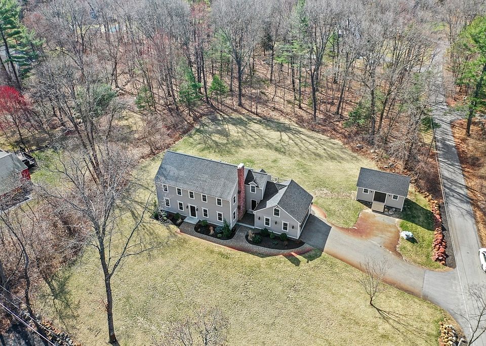 Stunning 4-bed, 2.5-bath Colonial blends modern luxury w/ cutting-edge technology. HW floors flow throughout the main level, leading to a spacious LR & cozy sitting room w/ a large picture window. Gourmet kitchen features GE Cafe appliances, a Reverse Osmosis Cloud System, and a breakfast bar open to the dining area. French doors lead to a serene greenhouse room, ideal for year-round enjoyment. The family room, centered around a stone fireplace, offers a warm gathering space. A half bath & laundry room complete the level. Upstairs, the primary suite includes a walk-in closet & a luxurious ensuite w/ soaking tub & glass-enclosed shower. Three add'l bedrooms & a full bath offer ample space for all. The lower level provides storage & the 2-car garage includes an EV charging station. Enjoy nature views from the deck & an outbuilding w/ electricity & mini-split unit - perfect for hobbies.With its thoughtful blend of smart technology & high-end amenities, this home is truly one-of-a-kind!