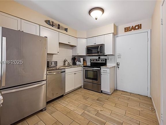 White sand beachStainless steel appliancesTile plank flooringGranite countertops