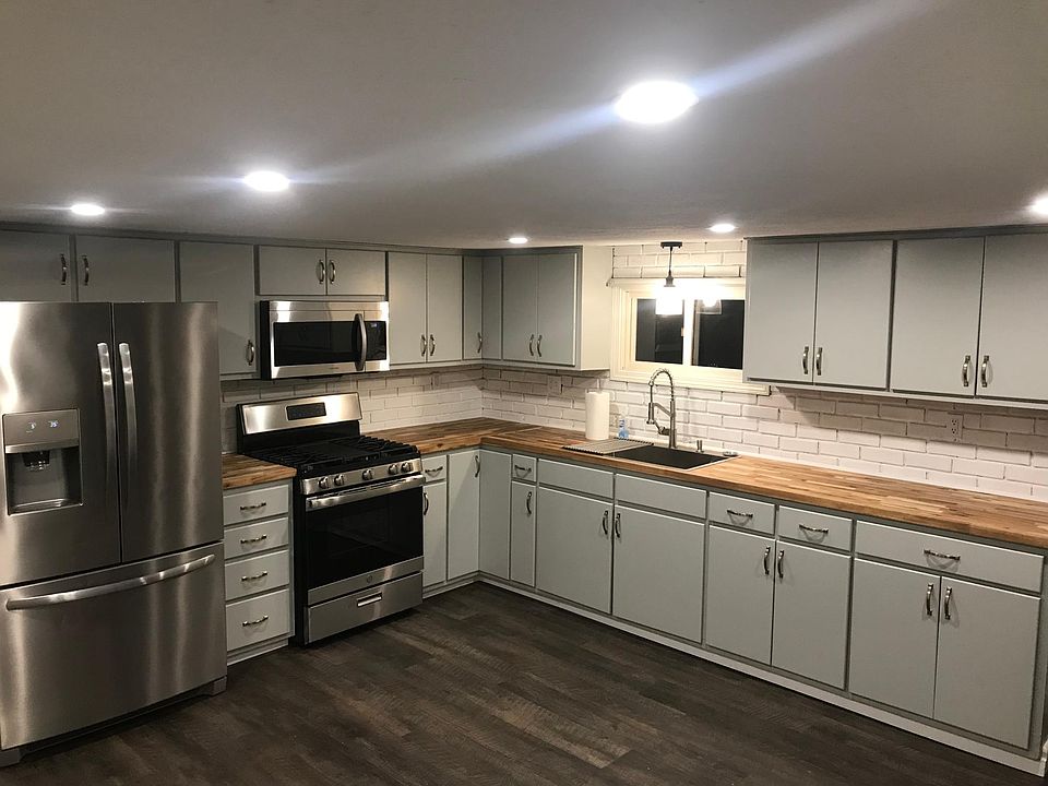 The kitchen has stainless appliances, extra large sink and butcher block counters (with plenty of room for an additional seating area). The bathroom features a tub/shower unit with a double vanity. Family room has a stone fireplace with electric insert and plenty of room for a nice big sectional! The bedrooms will comfortably fit queen beds and all closets have storage systems to help maximize space. Stackable washer and dryer included.