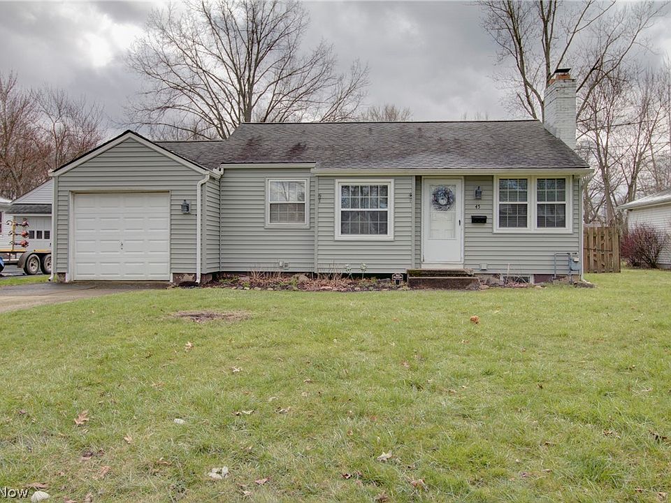 This adorable 2 bedroom, 2 full bath Berea ranch is reminiscent of a country cottage where your imagination will lead you to stockings being hung on the mantel, twinkle lights dimly lighting the perfectly weathered hardwood floors that adorn the living and dining area, and your favorite warm beverage while relaxing by the fireplace. When you think of a cozy and quaint home, it doesn't get much closer than this! The master bedroom is a generous size with his and her closets and enough space between each for a dresser or window seat. There is a full bath on each level, and the basement has great space for storage as well as a large, finishable area should someone desire more living space. The windows on the front of the home are newer, as is the siding and gutters. The hot water tank was installed in Oct. 2023 and there is a newer stamped concrete patio to relax on during the summertime and plenty of room for a firepit in the fall. For the avid gardener, dog lover, or perhaps one looking for space for a swing set or swimming pool, there is a large, fully fenced-in backyard with a storage shed. Being in Berea, this home is within 10 minutes of the airport, near Baldwin Wallace College, a half mile from the Metropark entrance, close to shopping, and 20 minutes from downtown Cleveland.