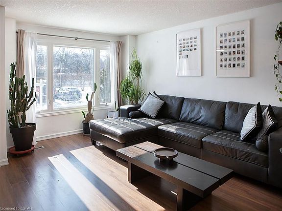 Welcome home! Perfect for first time home buyers and those who want more space! Situated in North London - the Huron Heights area is very popular for young and growing families. Close to Western, Masonville area, hospitals and downtown! This gorgeous end unit townhouse features 3 bedrooms and 1.5 bath. No carpet here! Laminate floors and tiles throughout. The main floor boasts a large living space with generous sized windows. The ample amount of sunlight that brightens up the area. The living room opens up to the dining area and kitchen. The kitchen features large 24 inch x 24 inch ceramic tile, all stainless steel appliances and an eat in kitchen area (Fridge, 2020, Dishwasher 2021). The basement offers a big recreation area and an equally massive storage area that has laundry and furnace (Laundry 2018) (Furnace/AC 2013) (Electrical 2021). Upstairs, the spacious master bedroom is situated away from the other two bedrooms for extra privacy. The full bathroom features a tiled in bathtub. The views of the second and third bedroom overlook the large mature trees in this complex. This is a perfect place to call home! Lots of visitor parking!!
