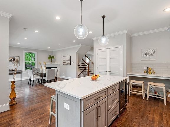 New construction townhouse in Newton Centre. Located down a long private driveway off Glen Ave, this 4 bed, 4.5 bath home is less than a half mile to the T station, shops, and Webster Woods Conservation area. It has an open layout, with 9’ ceilings, crown molding and large windows. The Chef’s kitchen features white cabinets, quartz counter tops, an island, pantry closet and professional grade Thermador appliances. There is a bright and sunny family room that has a fireplace and large sliding glass doors leading outside to the patio and fenced yard. Entering from the one car garage there is a mudroom with cubbies and an elegant powder room. The second-floor level has the primary suite with luxurious master bathroom and walk in closet. This level also includes two bedrooms, hall bath and laundry. There is a huge bonus room in the attic perfect for a home office & in the finished lower level a bedroom, full bath, & gym. A "Must See" property in a desirable neighborhood!