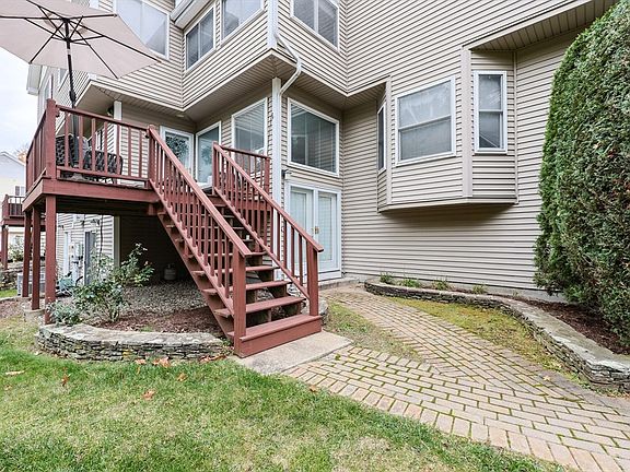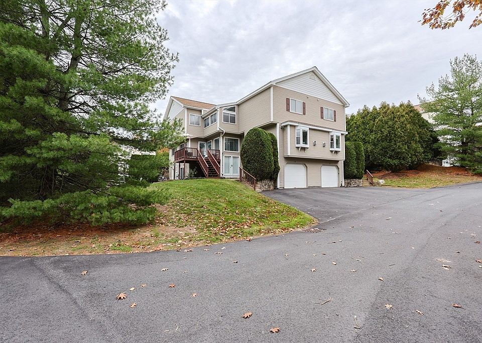 Step into this elegantly designed townhome and feel immediately at home. Ascend the curved staircase to the open main level, where dramatic windows fill the space with natural light. The living and dining areas connect beautifully, centered around a warm gas fireplace—perfect for today’s casual lifestyle. The kitchen features generous cabinetry, gas cooking, and a custom breakfast bar overlooking the yard. Upstairs, the expansive primary suite offers soaring ceilings, a sunny sitting area, a dual-sided gas fireplace shared with the luxurious en-suite bath, and generous closets. A spacious second bedroom includes its own bath, cathedral ceiling, and ceiling fan. The versatile loft is ideal for an office or hobby space. The finished lower-level family room opens to the yard through sliding glass doors.