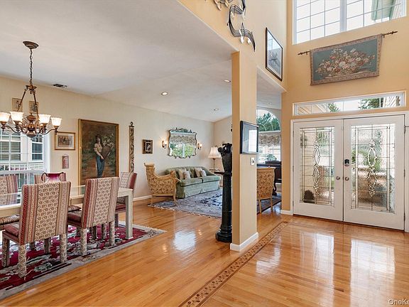 Welcome to 45 Hamlet Drive, nestled within the exclusive 24-hour gated community of The Hamlet at Wind Watch in Hauppauge, NY. This highly desirable Carlisle model boasts a spacious first-floor primary bedroom suite complete with two walk-in closets and a bathroom featuring double sinks, a shower, and a tub. The home's stunning double-story entry welcomes you with cathedral ceilings leading to a large family room with a cozy gas fireplace. The open-concept kitchen, equipped with a butler's pantry, is perfect for entertaining. Upstairs, you'll find three generously sized bedrooms and a full bath. Relax in the serene backyard with a built-in BBQ, paver patio, and captivating golf course views. Large 2 Car Garage. Updated Alarm System. A/C, Heating system and HWH replaced. Don’t miss this gem!