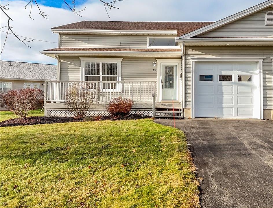 Welcome to easy living on Fredericton’s Northside! This beautifully maintained one-owner, end-unit garden home offers comfort, convenience, and exceptional space in a quiet corner-lot setting. The bright, open-concept main level features cathedral ceilings, a spacious living room with hardwood flooring, and patio doors leading to the back deck. The kitchen provides abundant cabinets, excellent counter space, and a dining area.The main level includes a 4-piece bathroom, convenient laundry, a primary bedroom, and a second bedroom ideal for guests or an office. The lower level is gyprocked and ready for future development, with a rough-in for a second bath and a natural gas forced-air furnace.An attached single-car garage adds convenience. Low monthly maintenance fee covers lawn care and snow removal—perfect for a low-maintenance lifestyle. Located just minutes from shopping, trails, and all Northside amenities, this end-unit home is ideal for downsizers, busy professionals, or anyone seeking comfort and simplicity without compromise.