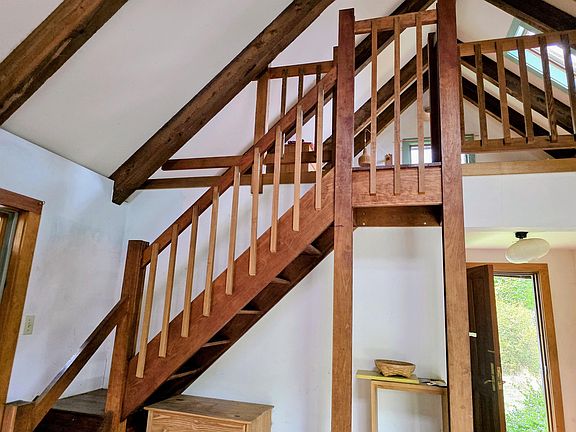 Separate drivewaysTimberpeg post-and-beam constructionPropane gas heatDeck off the backAmple windowsLarge attic spaceWood stove