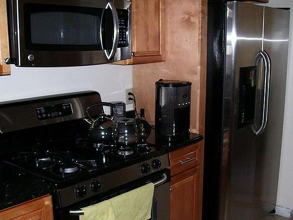 This Townhouse has it all: Granite counters, Stainless appliances, central A/C, Alarm, Dishwasher, full basement with washer dryer, hardwood floors, three stories, deck, third floor porch, five bedrooms, three and half baths, fireplace, and a great location! Available September 1st! Credit and background check required. Please call for more info. and to request a video tour. Back yard area.