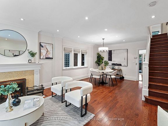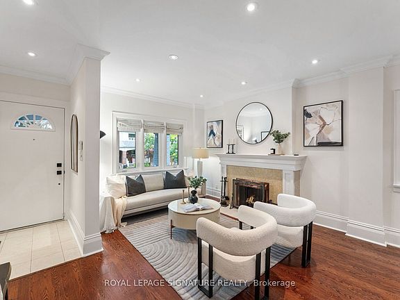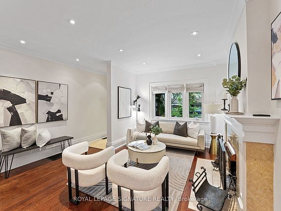 Welcome to 45 Hillsdale Ave W, a warm and inviting 4-bedroom family home in Chaplin Estates, just steps from Yonge Street. Featuring a legal front parking pad and a desirable south-facing backyard, this move-in-ready home combines timeless character with thoughtful updates in one of Toronto's most sought-after midtown neighbourhoods. The main floor offers open-concept living and dining with hardwood floors, crown moulding, pot lights, and a gas fireplace with an elegant marble surround. A custom built-in cabinet in the dining area adds both style and storage. The kitchen includes granite counters, a built-in granite breakfast table, premium appliances including a Sub-Zero fridge, Miele gas cooktop, wall oven, and dishwasher, and generous cupboard space for storage. Walk out to a beautifully landscaped low maintenance backyard perfect for relaxing or entertaining, with a covered deck, stone patio, garden lighting and irrigation, a storage shed, and a built-in gas line for BBQ. Upstairs, you'll find 4 comfortable bedrooms and an updated 4-piece bathroom. The versatile 4th bedroom works well as a nursery or home office. The finished lower level offers an additional bedroom, 3-piece bathroom, rec room, laundry, and ample storage, with a separate rear entrance for added convenience. **RECENT UPDATES include a new sloped shingled roof and an upgraded front parking pad and mutual drive (see attachments for full list of improvements)**. Lovingly maintained and in great condition **SEE HOME INSPECTION REPORT** move in and enjoy or customize to your liking. Ideally located in Chaplin Estates, you're steps from Yonge Street's shops and restaurants, top-rated schools (Oriole Pkwy Junior Public and North Toronto Collegiate), excellent parks, and the Eglinton subway station - combining city convenience with a strong sense of community in this prime Midtown location.