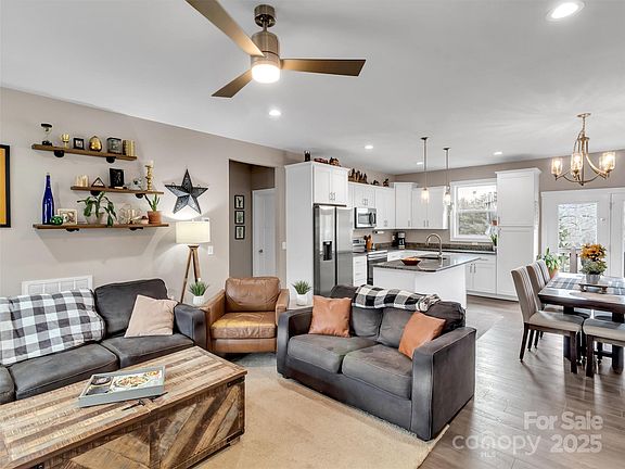 Don’t miss your chance to own this stunning ranch-style home, ideally located in town w/ the majestic WNC Mountains as your backdrop. This newer home offers a blend of modern design & upgrades throughout. Step inside to 9-ft ceilings & a beautiful kitchen featuring granite countertops, SS appliances, soft-close cabinets w/ pull-out shelving, & large island. The primary suite has a large walk-in closet & private bath w/ a double vanity, tile flooring, & shower. 2nd & 3rd bedrooms share a hall full bath with a tub/shower combo & tile floor. For added functionality, you’ll enjoy walk-in laundry rm & pantry off the kitchen. Outdoor living is just as impressive, w/ a welcoming covered front porch & a back deck that overlooks a private, fenced-in backyard. Spend your evenings around the custom-built firepit or tending to your garden. Need extra storage? The stand-up crawlspace provides ample room for all your belongings. This home truly has it all - location, style, & comfort. Don't miss!