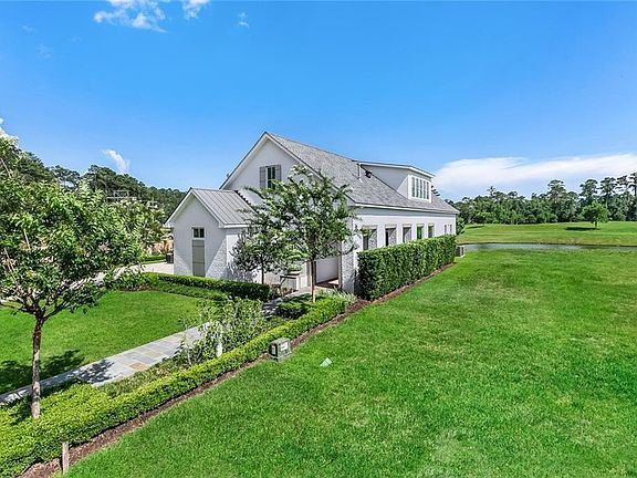 GREAT NEW PRICE! Chic painted brick on the TCE Golf Course and pond. Garden home lot. Entry porch, foyer with beams and walls of glass, open floor plan, chefs kitchen with quartz counters, wet bar with wine cooler, fireplace with stone mantle, French Doors opening onto patio, wood and limestone floors, owners suite with amazing views and marble bath. Second den + 3 spacious ensuite bedrooms up. Attached garage with golf cart bay, mudroom, abundant storage, new gutters, irrigation + security systems.