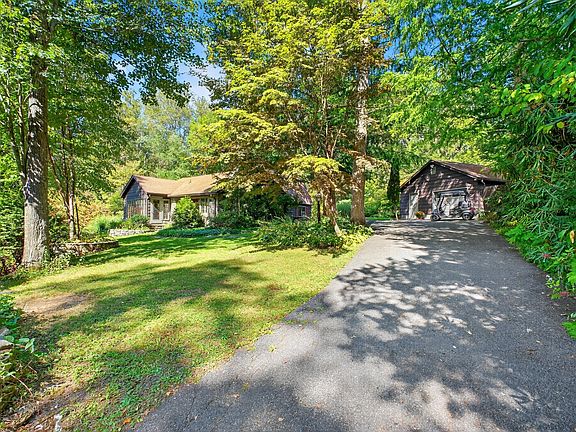 Quintessential lake home in the highly sought-after Candlewood Lake Club! This charming 3-bedroom, 3-bath residence offers two primary suites, including one on the main level for comfort and privacy. Nestled on a rare, level 1-acre lot with seasonal peek-a-boo lake views, the property features a spacious driveway, detached garage with storage, and plenty of outdoor space. Inside, a welcoming living room with stone fireplace and beamed ceiling exudes warmth, while the dining room and four-season sunroom with a wall of windows invite natural light. The main level includes a well-appointed kitchen, family room/den with patio access, and two bedrooms-one a primary suite with walk-in closet, bath, and private backyard entry. Upstairs, another primary suite offers a private retreat for guests or extended family. As a club member, enjoy Candlewood Lake Club's amenities: clubhouse, private 9-hole golf course with pro shop, tennis, pickleball, marina, beach with swimming docks, camp, ball field, hiking trails, winter boat storage, and more-all supported by on-site PGA and tennis pros. Minutes from New Milford Green's restaurants, boutiques, the Elephant's Trunk Flea Market, Stew Leonard's, and the CT Wine Trail. With its rare acreage, prime location, and endless potential, this is the quintessential Candlewood Lake retreat! CLC Annual HOA: Optional Annual Club Dues = $5,200 + CT State Tax Mandatory HOA: Capital Assessment: $800, Water: $600. Road Maintenance: $475 Club Initiation:$15,000 + CT State Tax