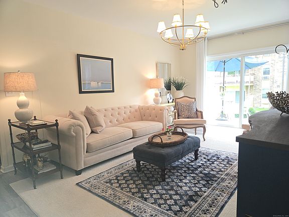 Charming 2-Bedroom Ranch-Style Condo with Updated Kitchen & Prime Location! Welcome to easy, low-maintenance living in this beautifully maintained 2-bedroom, 1-bath ranch-style condo, ideally located on the ground floor-just steps from the community pool! From the moment you walk in, you'll feel the pride of ownership throughout. The updated kitchen features granite countertops, custom cabinetry, tile flooring, and stainless steel appliances. The bathroom has been thoughtfully renovated with a newer vanity and a walk-in tiled shower. Natural light pours into the open-concept living and dining area, which flows seamlessly out to a private patio overlooking a spacious shared yard-perfect for relaxing, and entertaining. Both bedrooms are generously sized with ample closet space. Wide hallway and chair railing through out. Additional features include window blinds, curtains, A/C units (all included), and an HOA fee that covers heat and hot water-a true bonus for comfortable and affordable living. Ideally located just minutes from shopping, the Branford Green, beaches, and with a quick 12-minute commute into downtown New Haven, this home offers the perfect blend of convenience, comfort, and community. Don't miss out-schedule your showing today!