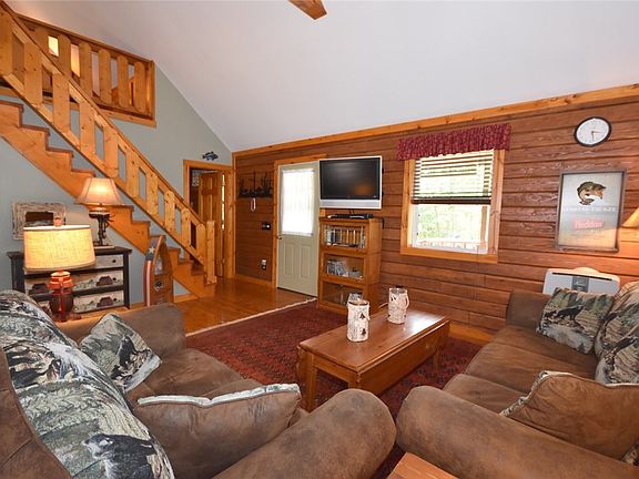 Located in the private lake community of Squaw Valley Woodlands, this is the best kept secret in Butler County. Original owners have upgraded this cabin and kept it in great condition. The greatroom has cathedral ceilings, hardwood floors and 6 panel doors. The first floor bedrooms are also hardwood with wood beamed ceilings. The loft is being used as the third bedroom with wall to wall carpeting and built-in dormer storage. The kitchen is equipped with stainless electric stove/oven, refrigerator/freezer & separate microwave. There is a new furnace and new metal roof. A level yard leads you to the oversized detached garage, dry walled and pre-wired for surround sound. Fully furnished, you can move right in and enjoy. The lake is across the gravel road at the end of the driveway. Perfect for fishing, swimming and kayaking. No gas motors allowed, electric motors only, catch and release. Close to the little towns of Emlenton & Foxburg. Cabin is being sold fully furnished.