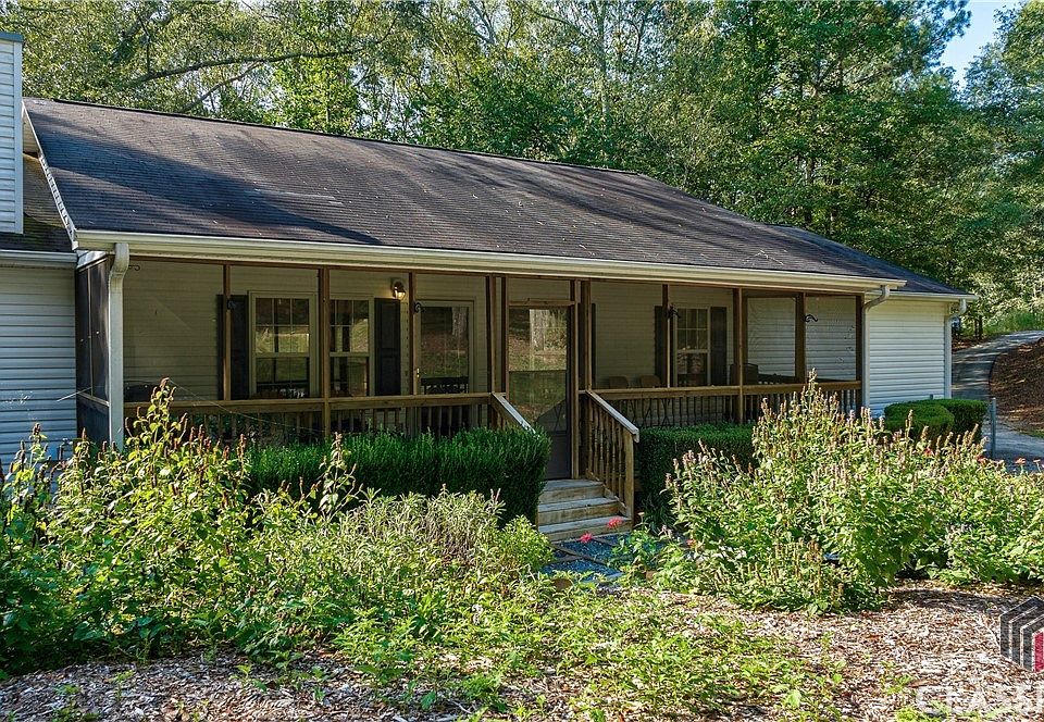 45 Katie Beth Dr is everything you're looking for! Sitting on over 3 acres, this home offers a fresh country living feel inside and outside the home! Upon arriving at the property, you will notice a secluded private lot surrounded by trees providing shade, garden beds with the perfect soil to grow just about anything and everything, and a massive screened in rocking chair front porch. This spacious updated 3 bedroom, 2 bath split bedroom floor plan features an open living area consisting of hardwood floors and a cozy wood burning stove! The recently updated fresh and bright kitchen features stainless steel appliances and loads of counter space. The garage has an office partially built in it with electricity, heating and cooling. All it needs is some finishing touches to it to have an additional room in this home! Don't miss your opportunity to own this little 3 acre peaceful slice of paradise in Madison county!