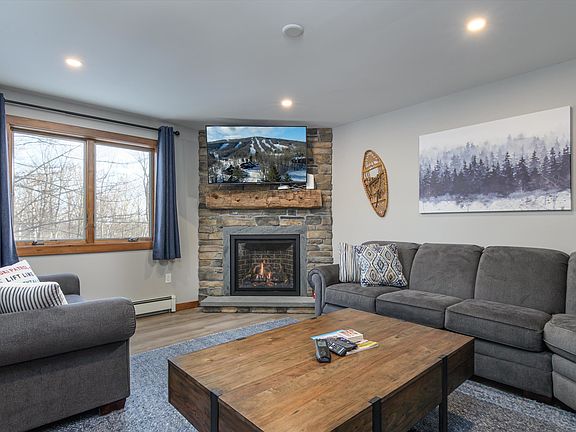 This is a beautifully renovated 3 bedroom, 2 full bath condominium on 2 levels. The interior entry, with laundry, has an air lock so that the cold air does not come into the condo. On the main level, you walk into a mudroom area and then into the open kitchen/dining/living room with new gas fireplace. The sunlight pours in through the wall of windows where there is a sliding door to the deck overlooking the trail. Breathe in the fresh mountain air. As you head to the lower level, you will find a bedroom/den, along with the second gas fireplace, a full bath, and a bar area with a sink and refrigerator. There is a door leading to the great outdoors where you will ski, board and just have fun in the snow! This is a beautiful condo. Come see it!