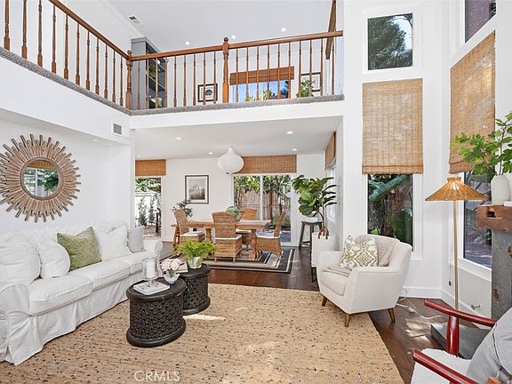 This single-family home offers a thoughtful blend of modern amenities, natural aesthetics and a harmonious blend of comfort and style. As you step into the living area, your gaze is immediately drawn upwards to the sky-high ceilings that lend an air of spaciousness. The focal point of this room is the custom stone fireplace, with a reclaimed wood mantle, radiating both warmth and sophistication. Sunlight floods the living space through large windows that have been thoughtfully incorporated throughout the home, creating an inviting ambiance and views of the surrounding landscape. The heart of the home, the remodeled kitchen, has been thoughtfully designed for both culinary enthusiasts and social gatherings. The expansion of square footage allows for a more open and airy atmosphere, while the slider in the kitchen seamlessly connects onto the back patio, creating a seamless transition for indoor-outdoor entertaining & al fresco dining. Step into this culinary haven to discover stainless steel appliances that are both sleek and functional. The stone countertop elegantly complements the cabinetry, offering not only a visually pleasing aesthetic but also ample storage space. A powder room on the main level, with a custom vanity, conveniently serves both residents and guests. Venturing upstairs, the master bedroom is a true sanctuary. With an slider & attached deck that offers views of the rolling hills, mornings and evenings become a tranquil escape. The master bath boasts dual sinks, a spacious walk-in closet, and a generously sized tub that beckons for indulgent soaking sessions. Privacy and functionality are paramount in the layout, as two additional bedrooms grace the upper floor. An added bonus is the loft/den space, which can easily serve as a home office or an extra living area. For those seeking even more space, there's potential to convert into a fourth bedroom, accommodating evolving needs. The property doesn't stop impressing there – a two-car attached garage, coupled with a spacious driveway, provides ample parking and storage options. Embrace the charm of Laguna Beach living with this optimized single-family home. With wood floors, sky-high ceilings, a remodeled kitchen, and captivating outdoor spaces, this residence is primed for comfort living, serene moments, and unforgettable gatherings. Don't miss the chance to call this gem your own.