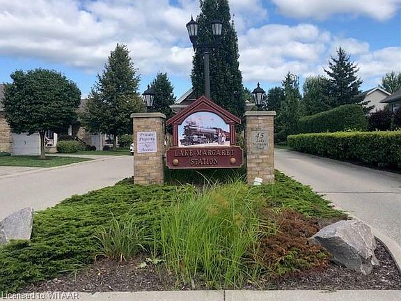 WELCOME TO LAKE MARGARET STATION! Built and developed by award winning builder, Doug Tarry Limited. This wonderful condominium community is one of a kind and highly sought after. This beautiful brick bungalow features 2 + 1 bedrooms, 1.5 baths, open concept living with gas fireplace and convenient main floor laundry. Patio doors lead to a nice sized deck with an electric awning and private greenspace. Use your imagination in the unfinished basement to make it your very own. A single car garage with auto door opener and lovely paving stone driveway make this home a true gem. Close to walking trails and all amenities it won't last long. New AC unit installed July 2024. Measurements are approximate.