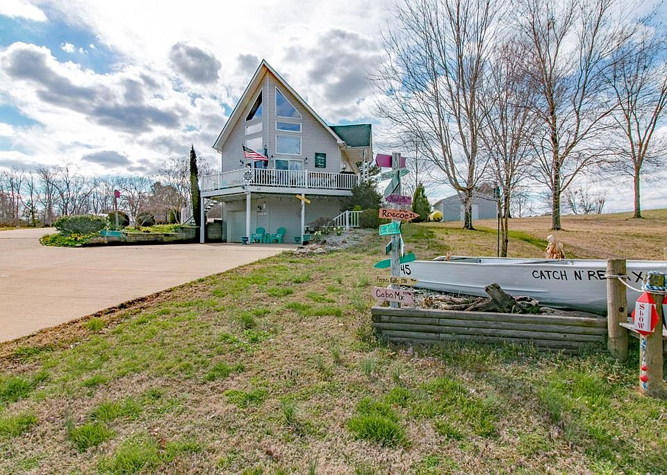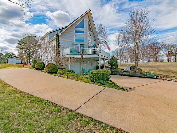 Lake Lovers Dream! This 3 bedroom, 2 bath home has a beautiful view of KY lake. Enjoy entertaining your family & friends at this vacation spot or full time resident . Large living area with an attached room used as a den(would make a great office). Two bedrooms on the main floor and 1 bathroom. Master bedroom and bath upstairs. Beautiful hardwood floors in the living area that flows right into the kitchen. The basement is partially heated and has one recently added bedroom. Laundry room is located in the basement with a 1 car garage, and 12x24 utility room that could be easily converted to a spare bedroom or man cave. 24x30 storage shed in the backyard to store your toys. Must See!!
