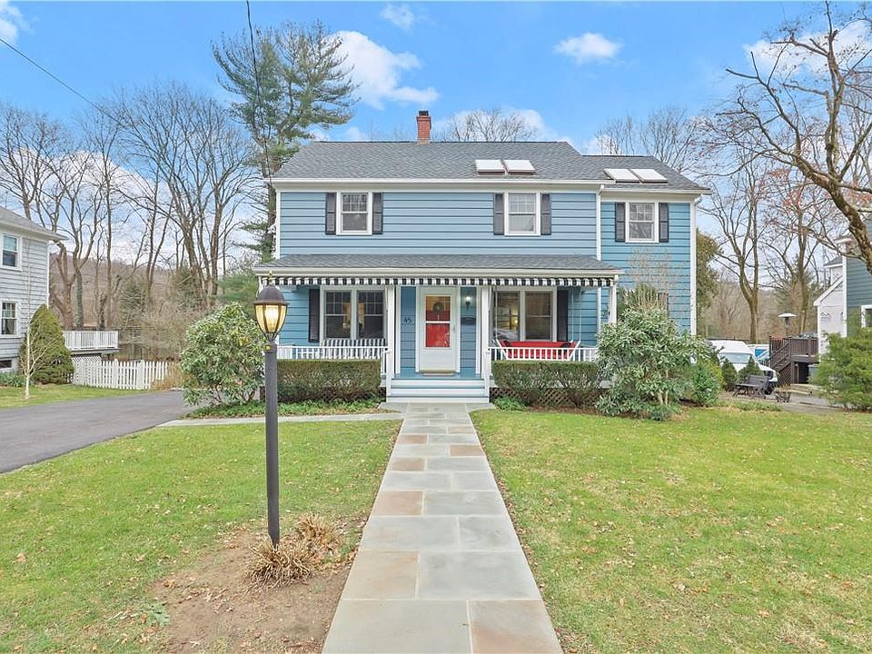 This is the expanded colonial you have been waiting for! The wide front porch welcomes you into the large living room with an elegant staircase and a wood-burning brick fireplace that warms the house on cold winter evenings. Hardwood floors guide you around the living room and formal dining room to the expanded eat-in kitchen. The brightly lit kitchen has 2 skylights, a door to the deck, and lots of cabinet and counter space. The cozy den has sliding glass doors out to the large deck fit for grilling or simply lounging in the shade. A powder room completes the first floor. The second floor features a main suite with a cathedral ceiling, 4 skylights, 4 closets, and a private bath with a spa tub. The second bedroom has 2 skylights and 2 double closets. The third bedroom has a walk-in closet. Find your way up to the top floor for two more large spaces for storage if needed. The walk-out basement is clean and dry with updated mechanicals and plenty of room for tools, supplies, storage, exercise or work at home. There is a full bath on this level as well. The outdoors features an oversized detached garage and a level yard for outdoor fun and games. Additional Information: ParkingFeatures:1 Car Detached,