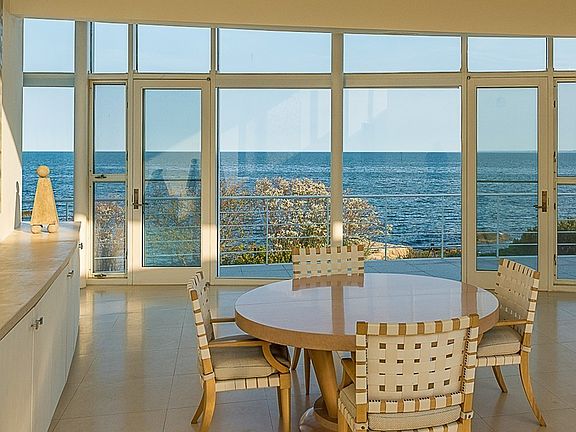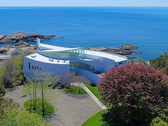 Designed by world renowned Schwartz/Silver Architects this magnificent ocean front contemporary home is an architectural masterpiece. Designed to take advantage of an exceptional vantage point on Little’s Point, a rocky promontory with crashing waves below and unlimited ocean views. This magnificent home which perfectly blends its arcing forms, soaring ceilings and expansive windows, creates panoramic views of sea and sky - unmatched in the Boston area. The 5 en-suite BRs all have magnificent ocean views and the master suite is stunning with an oceanside private deck and great views from the luxurious master bath. The 3 story atrium with expansive curved walls, wide open spaces and dramatic windows opens to a grand, spacious "great room" with unlimited views and access to the deck running the length of the house. Located at the end of a private lane this gated home on 1.4 acres of beautifully landscaped grounds, provides its owner with the ultimate, quiet, ocean front lifestyle.