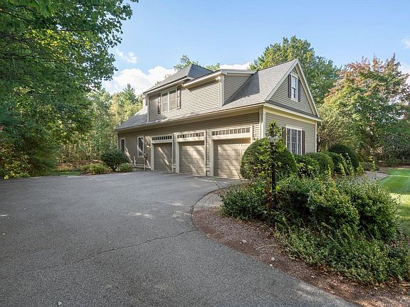 Nestled in one of Hollis’s most coveted neighborhoods, this home offers a rare opportunity on a park-like setting. Situated on 1.24 acres with access to scenic walking trails from the backyard. This beautifully maintained Colonial, built in 2000, offers the perfect blend of timeless charm and modern comfort. A welcoming farmer's porch leads to 3 levels of living space, setting the tone for the airy and light-filled spaces throughout. The vaulted family room, located just off the eat-in kitchen, features soaring ceilings, wood floors and fireplace, creating an ideal setting for gathering and relaxing. The kitchen includes stainless steel appliances, island and opens to a spacious deck, perfect for entertaining. The main level also features a formal dining room, living room, and a dedicated office, offering flexible space for today's lifestyle. A second staircase allows access to the second floor. Upstairs, the primary suite is a true retreat, complete with a sitting area, gas fireplace, walk-in closet, and an updated spa-like bathroom with a soaking tub and separate shower. Three additional bedrooms include either private en-suites or a Jack-and-Jill bath, providing comfort and convenience for family or guests. The lower walk out level offers finished gathering area, workout room and ample storage space. Completing this exceptional property is a 3-car garage and peace of mind with an on-demand generator. One-year Home Warranty included.