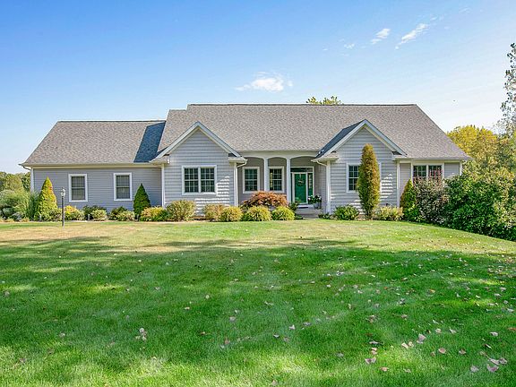 SO MUCH SPACE!!!!! 3825 Total square footage in this ranch with a lower level walkout plus just over 2 acres for your enjoyment. Both floors has 9 foot ceilings. 3 bedrooms, 3.5 baths, separate laundry room, exercise area, wet bar, family room and office. Home features wood floors, quartz counters, large kitchen island with seating, walk-in pantry, laundry area with folding area and cabinets. Primary bath has a soaking tub and a large shower. kitchen has a double oven, coffee bar and stainless appliances. Outside is a deck off the dining area and a large patio on the lower level walkout. Lawn has a sprinkler system and back yard area has a fire pit with a trail thru a wooded area. Home is in a site condo with the fee being 600 dollars per year