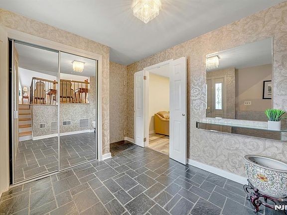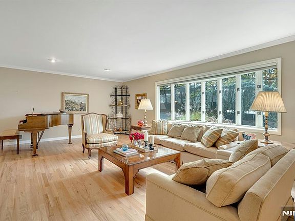Don't miss this hidden gem nestled on a serene cul-de-sac near NYC bus and Paramus H.S and under 2 miles to Bergen County's beloved Van Saun Park. This thoughtfully expanded split level home offers spacious rooms throughout, beautifully refinished hardwood floors and 4 generous bedrooms on one level, including a large primary suite with 2 walk-in closets and private ensuite bathroom. Gracious entry foyer leads directly to attached garage, a comfortable den with new vinyl plank flooring, and a convenient powder room. The Main floor includes a bright expansive living room (29x15'5") that flows seamlessly into the elegant banquet size dining room featuring gorgeous wide plank pegged wood flooring. Culinary endeavors await in the granite eat-in kitchen equipped with double-oven, abundant cabinetry, built-in workstation and skylight! Entertain or relax in the private yard that includes a large covered patio accessible from the den, with nearby powder room for guests. The large basement offers great potential to customize for additional living space. Enjoy low taxes and a top-rated school system in this sought-after community with great access to world class shopping, dining, parks and other recreational activities.