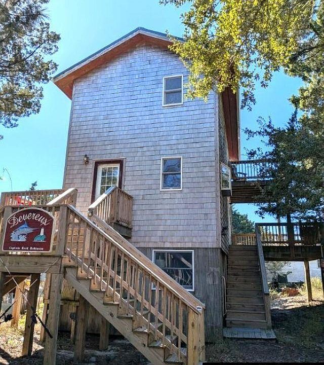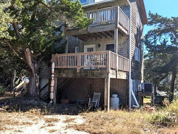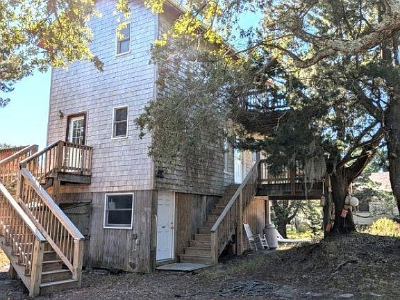 A 1 bedroom/1 bath home accessed by a private lane off Sunset Drive to a secluded yet convenient location. An easy walk to Ocracoke Coffee Co. for your morning cup of coffee and later for a wonderful dinner at a nearby restaurant. Beautiful old live oaks set the tone for your island retreat. First floor has an open kitchen/living/dining area with hardwood floors, ceiling fan, kitchen bar seating and table dining, gas cook stove, kitchen sink window box, a large kitchen with plenty of cabinet space, access to a small front deck and larger side deck, gas pack heater for those cooler winter nights and central heat/ac. The second floor is a large open sleeping area with a dressing/closet area, full bath, wood floor, ceiling fan and access to a gracious sundeck. Ground floor storage room, utility and washer/dryer area. Rental history on file.