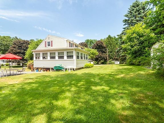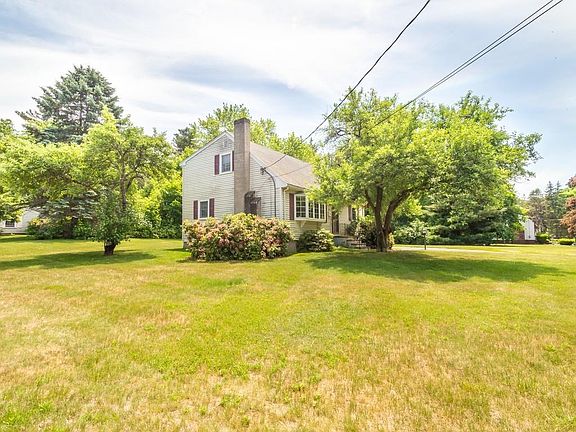 Spacious one owner charming cape on an expansive corner lot of a quiet cul-de-sac neighborhood. Fall in love with this turnkey 3 bedroom, 2 full bathroom home with gleaming hardwood floors throughout. Starting with the main entrance you'll instantly notice the extra wide new bay window in the living room complete with a wood burning fireplace. The recently updated kitchen has custom maple cabinets, bamboo floors, and a center island perfect for entertaining. The dining room opens right onto the kitchen creating the perfect open concept. The rest of the first floor features a full bathroom and bedroom. Upstairs you have two more spacious bedrooms with a full bathroom. Recently installed Anderson windows throughout the entire home. Full basement has one finished side and one side perfect for storage and laundry w/ newer furnace and hot water tank! Relax in the large four season room or step outside and enjoy your professionally landscaped stunning yard complete with original apple trees.