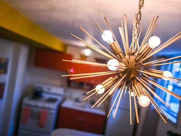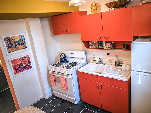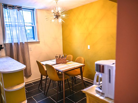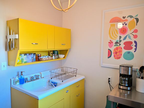 Ground floor, one bedroom apartment in an expansive historic six unit converted historic home. No stairs, all one level. Easily accessible from the parking lot behind the six-unit apartment building. There is one step down at the entrance. Wheelchair ramp available. Mid modern, artistic, eclectic decor.