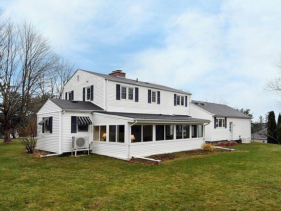 Charming Dutch Colonial on Fiske Hill offers a seamless combination of appealing updates and classic craftsmanship. The spacious living room features a lovely, wood-burning fireplace and windows to the North and South. A cozy library can become private with available French doors. The cabinet-packed, counter-rich kitchen, with an abundance of light, includes a breakfast nook. The rear of the house is complimented by a recently completed four-season sunroom. It can be comfortably enjoyed in all types of weather and offers spectacular views of sunsets. A private office completes the first floor. The second floor is host to three bedrooms, two of which overlook the lush backyard. The front-to-back primary bedroom has ample closets and windows on three sides. A two-car garage includes attic space for plentiful storage. This home is beautifully sited on a level lot and adorned with fruit trees and perennials. Excellent access to the many Sturbridge restaurants. Ten minutes to I-84 and I-90