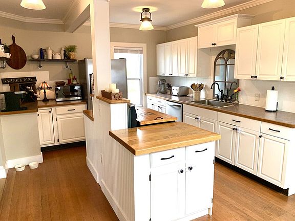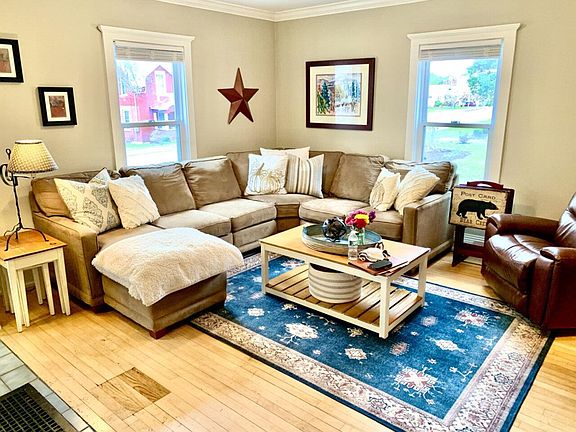 This very well-maintained, 4-bedroom, Cross Gable Gothic-style home with a large 2-car garage has so much to offer. Elegant woodwork, large rooms, high ceilings, beautiful hardwood floors, large front living room, wood banister staircase, a custom cook’s kitchen, and sunny dining room lined with large windows providing lots of natural light. Large back entry mudroom with half bath, big closet, and a private staircase up to the 2nd bedroom or office. On the second floor, you will find a large full bathroom with laundry, and four bedrooms, one featuring a vaulted ceiling and a sliding door leading out to a private balcony. The upstairs hallway has built-in book shelves and a wonderful reading nook in the front dormer window. The exterior features two porches, huge 2-car garage with storage above, and a large flat lot with mature trees - ideal for gardening or playing outside. Many improvements over the years, including the custom kitchen, newer roof, windows, updated wiring, added insulation, natural gas hot air furnace, and many more. Conveniently located within a short distance to historic downtown St. Albans, Lake Champlain, and I-89. This 4-Star Energy rated home is move-in ready and not to be missed!