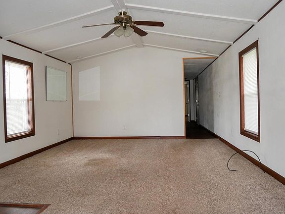 Open concept 2 bedroom, 1 bath mobile home. Kitchen with eat in dining and bay window. Spacious living room. 2 covered porches. Full bath with walk in shower. Concrete driveway approach. 2 car detached garage and storage shed. Refrigerator, stove, dishwasher, washer, dryer and storage shed are included in the sale price.