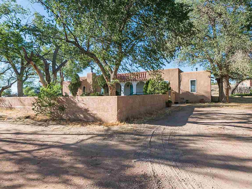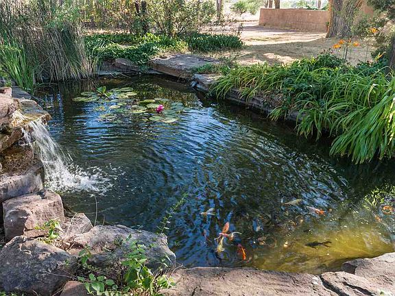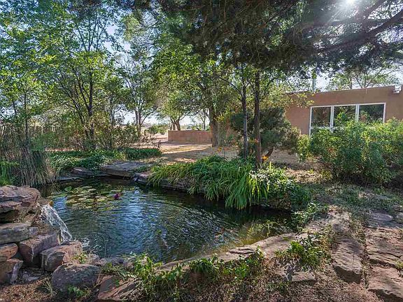 A Hacienda ready for revival. This extraordinary one of a kind property is within the city limits near south side conveniences, not far from Rte 599 for a short cruise to downtown Santa Fe or a short distance to Cerrillos Road. An old elegance prevails privately tucked away behind large shade trees and surrounded by property suited for a ranch, farm, or a variety of other enterprises. Perfect for work or play. The shady koi pond is a perfect place to take a break from cultivating the garden, fixing up the guest house, or working in the shop behind the house. This is quiet country living in town. Fix up and occupy at the same time. Fix and flip. Fix and live happily ever after. It needs new appliances. There are many lovely light filled rooms including the sun room with a view of the pond. The original music room would make a lovely dining room. There is a roomy foyer, separation of bedrooms, and a gracious floor plan. The guest house requires work to be habitable. It is already hooked up to water and septic with a bathroom and partial kitchen. The guest house also includes a fireplace. Come see this very unique property.